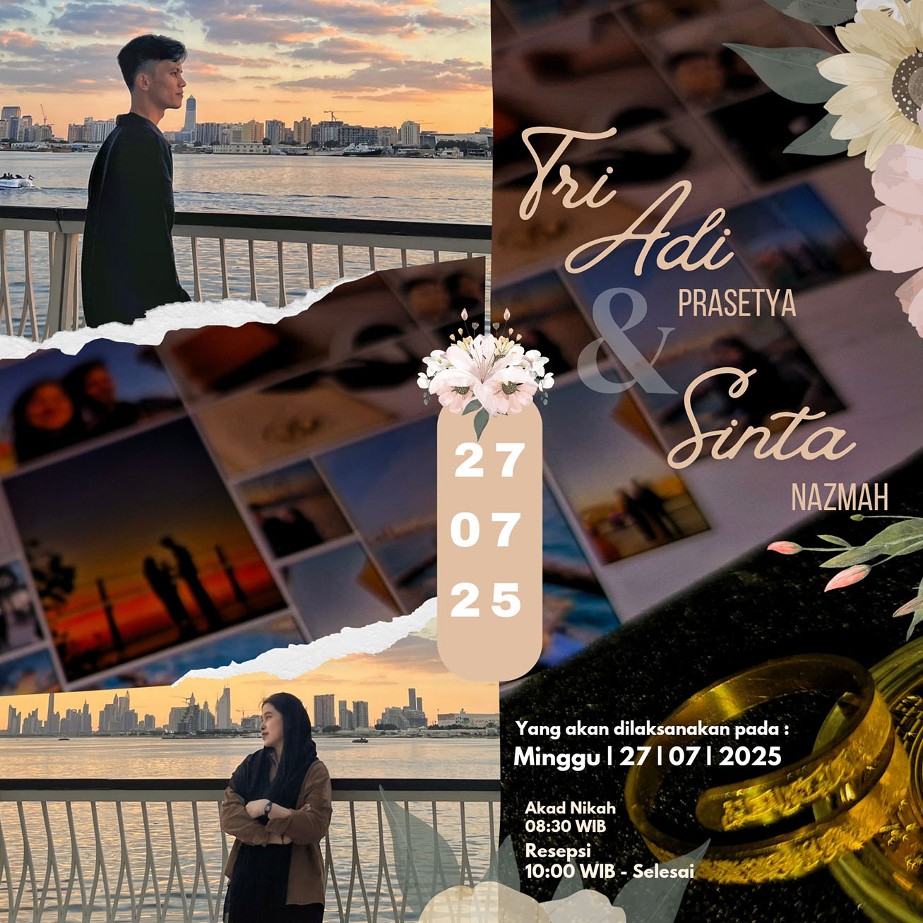 Assalamu’alaikum Warahmatullahi Wabarakatuh, Dengan memohon rahmat dan ridho Allah SWT, Kami Mengundang Bapak/Ibu/Saudara/i, untuk menghadiri acara pernikahan kami.